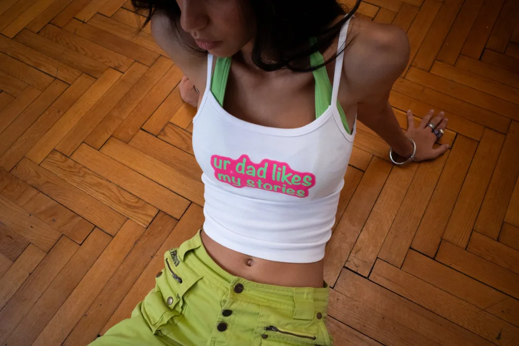 With almost 150k followers on Instagram, content creator, stylist, and sass icon, Abokamar is a cherished local celebrity and the designer behind You Make Me Sick. With spaghetti strap tops that have provocative bedazzled statements, and controversial ones like “Your dog is ugly,” the collection may be smaller than Abokamar’s fabulous hair, but like him, it has a lot to say. Definitely on the watchlist for 2026.