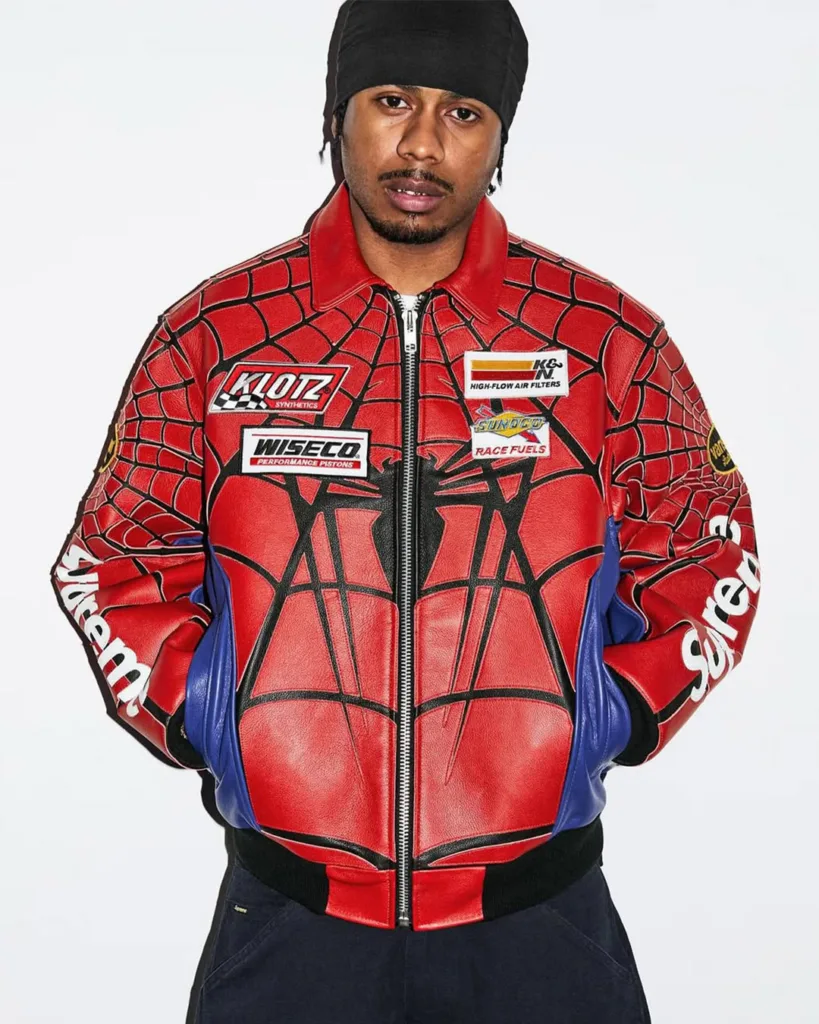 Then there’s the maximalist end of the spectrum. A high-gloss link-up with Jacob & Co. pushes Supreme further into luxury territory, while crystal-studded belts from B.B. Simon double down on Y2K excess. And in a move that feels chaotic but on-brand, a capsule with Spider-Man taps into Marvel’s gritty archive energy.